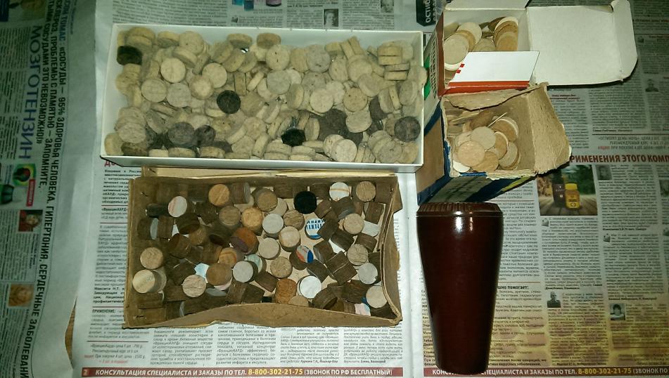4 коробки пыжей.