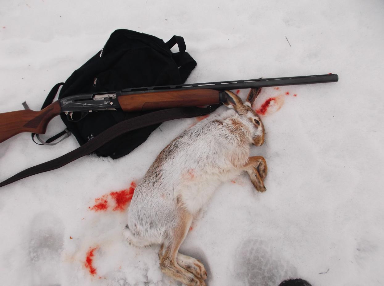 Вчера в обед добыл зайчика, выдалась отличная зимняя безветренная погода -7 градусов, следов полно, поднялся косой довольно близко, отпустил его метров на 20-25 и однёркой бк перебил задние лапы, после прицельно двоечкой в голову добрал ушастого чтобы не мучался. Всем успешных охот, меня с долгожданным ПоЛеМ)