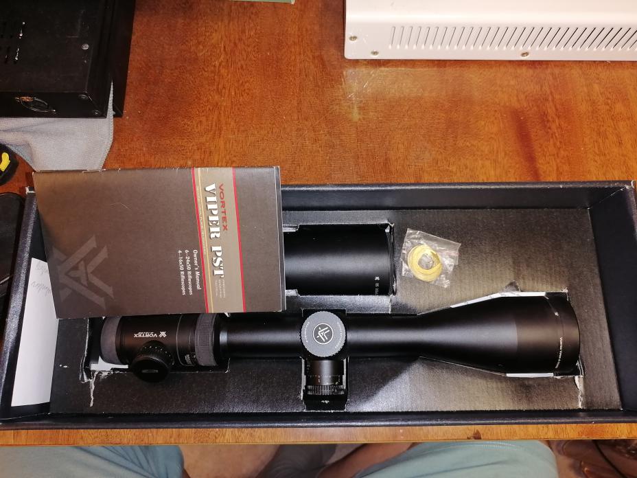 В комплекте родная коробка , бленда , разрезные шайбы для обнуления барабанов после пристрелки .