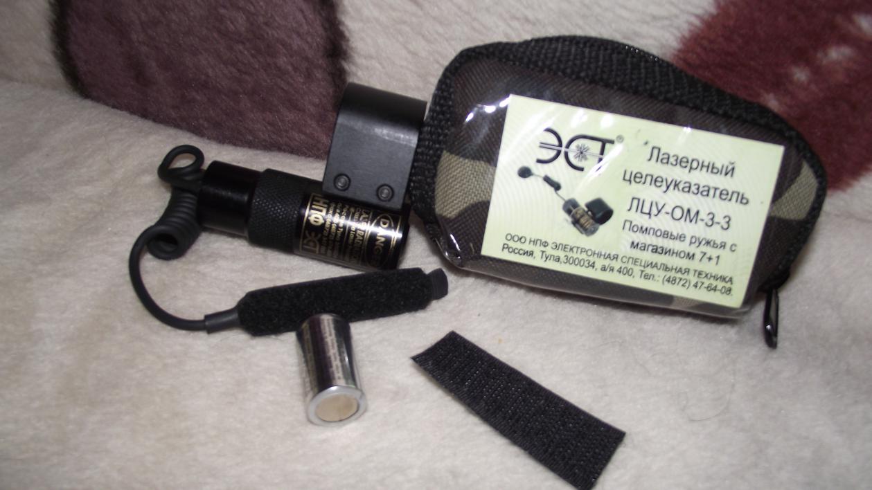 В комплект входит сам ЛЦУ а так же две липучки на цевьё и батарейка.