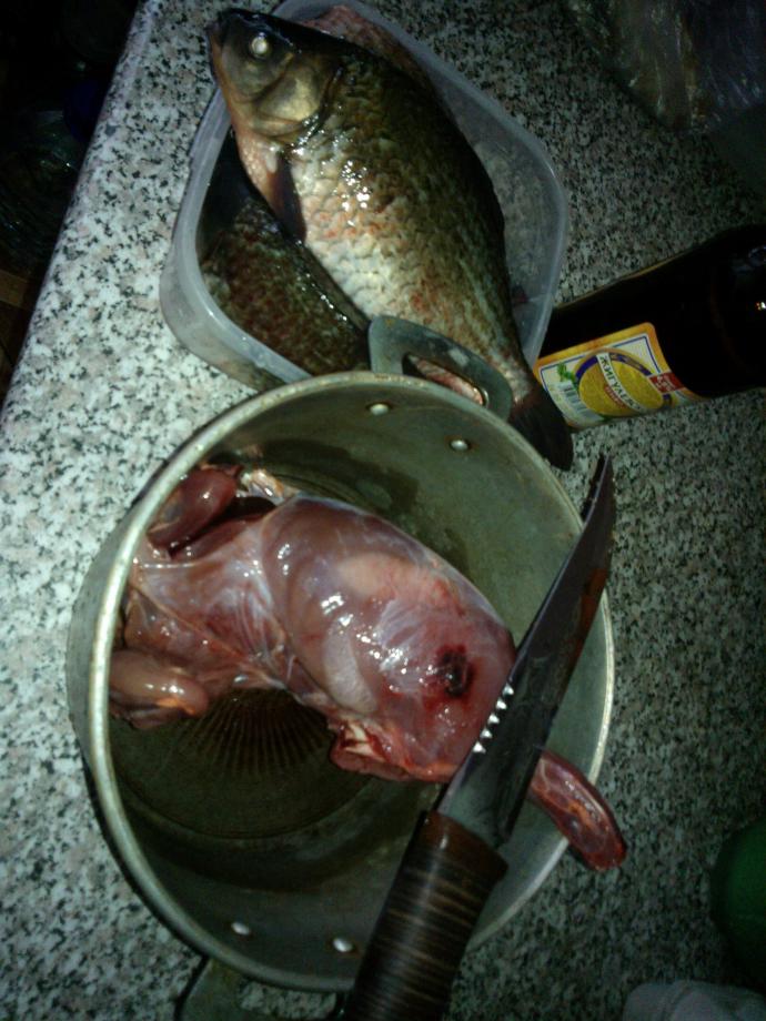 Вчера проснувшись часов в 7 утра с бадунца не хилого(у друга в субботу была свадьба) решил сгонять погулять на свежем воздухе и собачку размять подняли видимо норку та благополучно понорилась ("Перс" мой ягд как был досадно обижен маленькой норой) пройдя несколько озер подняли селешка удачный выстрел и вот результат...(стрелял пятеркой Главпатрон био дистанция метров 25 с первого на глухо) пока доставали спалили сеточку позаимствовали карасиков на жареху... вообщем поездка удалась на славу))))похмелье как рукой сняло, селех в пеньках пришлось снять шкуру...