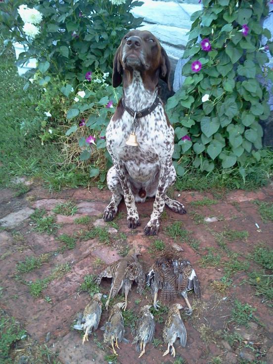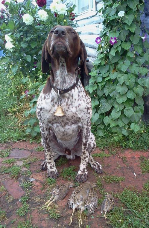 Поехали с помощником разведать одно поле.Итог разведки-взяли одну куропатку с выводка (больше не надо) и двух перепелов.Причем,куропатка получилось подранком,и пока помощник ловил её умудрился оторвать хвост.Не себе конечно-куропатке. Стрелял дробью № 10,рассредоточка.С этой дробью подранки вообще не редкость,но раз она есть то надо её использовать.А вообще,пёс у меня без проблем находит всех подранков. Такого ещё не было чтобы кого-то бросили.