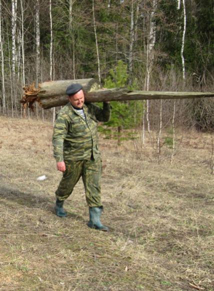 Леонид, крепкого сложения мужчина 45 лет, чуть выше среднего роста, всю жизнь проохотился в глухих ветлужских лесах. Из своего верного Иж-27 ему случалось добывать местную дичь от рябчика до медведя. Не было в этом «послужном» списке только гуся. В своей охотничьей бригаде Леонида очень уважают за железные нервы, меткий глаз и твердую руку. Однажды он по первому снегу тропил медведя. В одном месте косолапый, сделал скидку - пятясь, вернулся по своему же следу, а затем прыгнул в сторону и залег за кустом. Медведь неожиданно поднялся в десятке метров за спиной Леонида, и тот свалил его с разворота одним выстрелом в голову! Вместо утвердительных «Да», «Конечно» Леонид произносит: «Обязательно»
