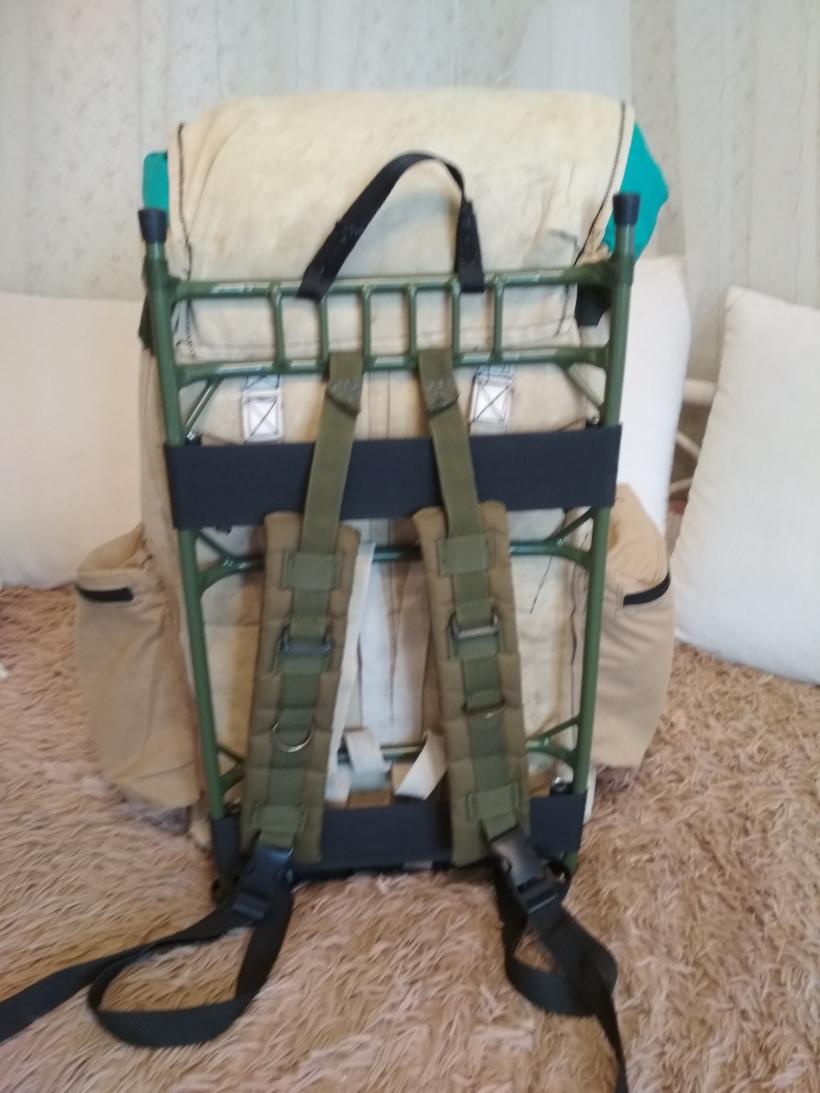 Продолжу рубрику "бесполезные самоделки" )). Буде кто мне такую шмотку на заказ сделал, по рукам бы ему надавал. А тут сам, из бросовых материалов, где что подобрал. Исходник - титановая рамка/поняжка. Это стоило денег. А так, брезентовый вещмешок был сшит лет так 20 назад, если не больше, для багажа в вахтовом самолете. Брезент от чего-то с буровой. Пришил три кармашка из тонкого брезента снаружи и один внутри. Адаптировал мешок под рамку. Если потребуется, мешок можно использовать, как сидор, а рамку отдельно в качестве поняги. Эстетики, конечно, минимум, зато какой колорит!