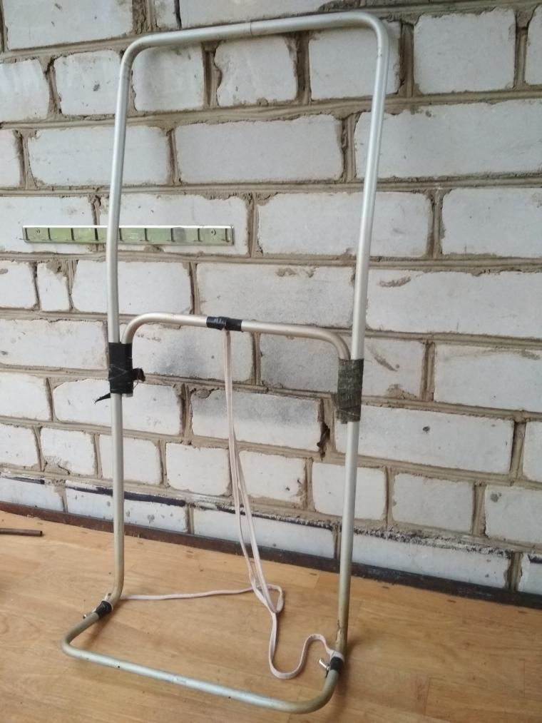 Вот, нашел на даче в кладовке. Об этом, собственно, говорил, но повторюсь. Кому интересно приложить руки, заберите. Гнул из лыжных палок. Заготовка не варенная, не клепаная - набор самоделкина. Сейчас я бы отрезал верхнюю дугу, оставив рожки как у LK-35, а отрезанную дугу поставил бы как дополнительный элемент жесткости на спинку. Большие веса на этой рамке не поносишь, но 20 кг вполне. Хотя она более интересна была бы на ходовой, когда вес совсем не большой, а главная задача - сухая спина. Кстати, дюраль раза в 1,5 легче титана. Таким образом, при минимальных нагрузках выигрываем еще и в весе. Так расхвалил, что в пору самому заняться и доделать)). Забирайте скорее, а то не удержусь.