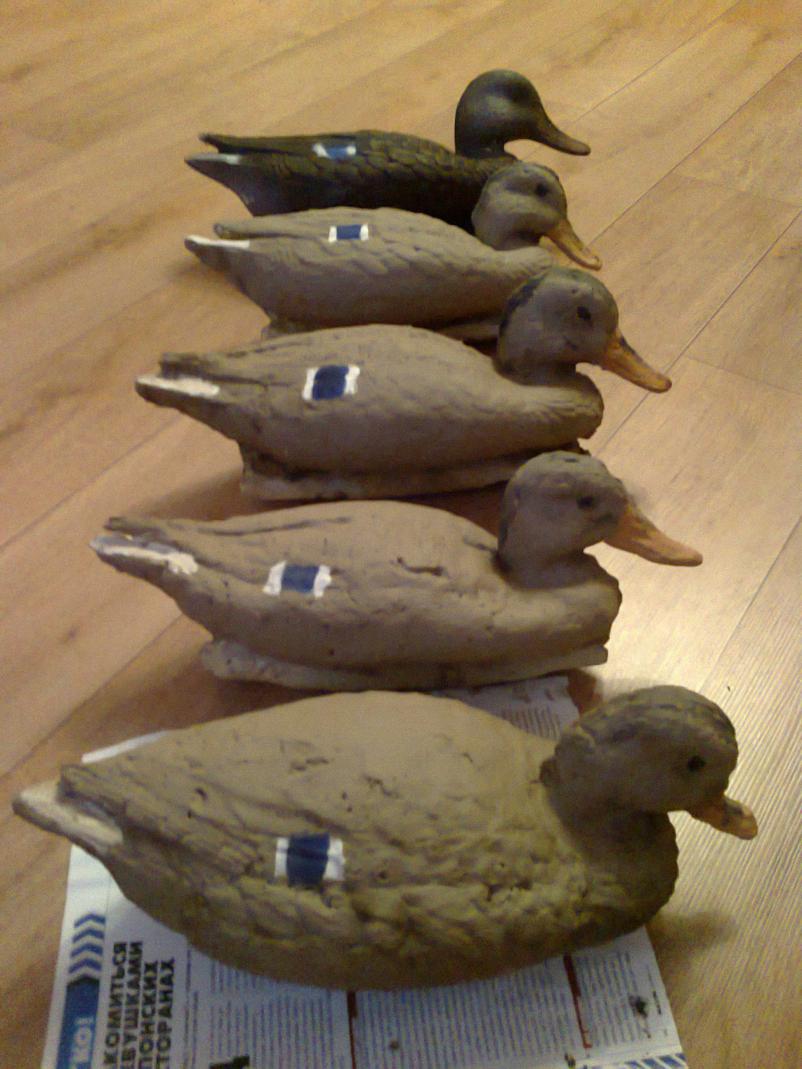 Отец делал утиные чучела из ковра(татами).Резали по размеру и склеивали.Потом вырезал.Работа творческая и долгая.Делал зимними вечерами.Получилось супер.Легкие и не ломаются.Не впитывают воду.Фото нет и не будет,т.к. в первый же сезон(2010) отец после вечерней зори благополучно оставил мешок с чучалами, а сам уехал.Когда чухнулись,их и след простыл.Обидно.До сих пор никак не отойдет.Было это за горпляжем в Гранном,осенью 2010 года.Может кто чё знает про дальнейшую судьбу чучалок?