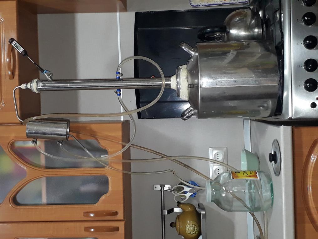 Колонну делал сам,неказистая,конечно,но работает.Есть несколько змеевиков для перегона браг,вина и пр. Спиртомеры,колонна с БАУ-А. Последний раз редактировалось Иван Мальцев; 27.12.2018 в 11:47. |