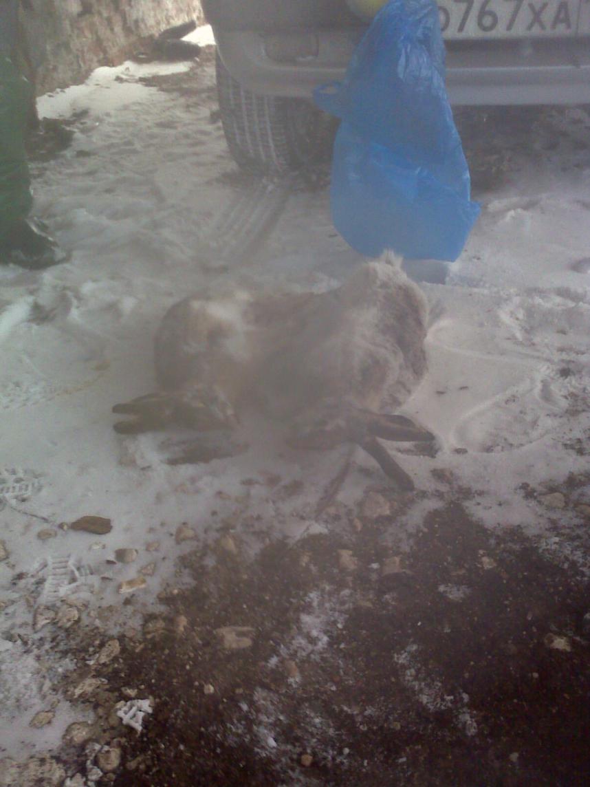 После этого поднимали еще пять зайцев , но или вскакивали неудобно или откровенно мазали . Из одной посадки выгнали трех , давно такого не видел , но все ушли перпендикулярно в поле. Кстати уже давно не видел чтобы заяц шел по посадке , все время резко в поле , похоже уже рефлекс на генном уровне. Фото не удачное , уже перед разделкой , днем не хотели время тратить. |