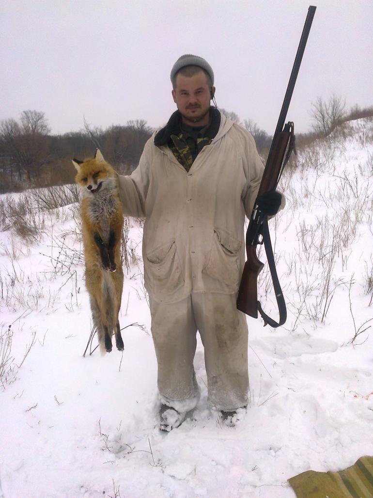 Вчера прибыл с Вятской земли из стольного града Кирова, оставил пару дней здоровья с училищными друзьями. Во вторник само собой ничего на счет охоты не вышло, а сегодня с утра пораньше батя разбудил телефонным звонком и предложил в окно глянуть. Решение было принято ежеминутно. Часов в 11 собакен поднял лисичку в густом осиннике и началось... Первый раз своими глазами видел как мастерит рыжая. Собака еще далековато а лис идет мимо меня метрах в 40 (густой подлесок и стрелять нет смысла, стою наблюдаю, но на мушке держу). По ходу движения лис забирается на достаточно большое поваленное дерево, проходит по всей его длине и на самом конце останавливается и слушает собачку. Стрелять не стал, продолжил наблюдение. Дождавшись когда появится собака лис спрыгнул и скрылся в густых кустах дикого торона. Собачке дойдя до дерева пришлось потрудиться над уловкой лиса, тем не менее гон продолжился. Сначала отдалился метров на 100 влево от меня, а потом начал приближаться. Я замер в ожидании появления лиса, дистанция сокращается 50-40-30 метров, но ничего не происходит и вдруг в 20 метрах справа от себя замечаю лиса, который сидит и вместе со мной слушает собаку. Посидев немного начинает двигаться в сторону гона, но с другой стороны кустов. Не доходя 10 метров до этих самых кустов, за которыми работала собака, разворачивается и движется сначало на меня, а потом поворачивается левым боком. Счастью моему нет предела, второй раз наблюдать за ним я не стал. Выстрел и лис без движения утыкается в снег. Подошли к машине, попили чайку и решили поискать зайку. Наткнувшись на след косого решили его поискать, но выйдя из машины увидели двух знакомых охотников немного в стороне. На наших глазах один из них с подъема взял неплохого зайчишку. Посовещавшись решили ехать домой. Не люблю я когда плечом к плечу охотятся разные компании. Все бы ничего да за собачку переживаешь, мало-ли что. Допиваем чай и едем домой. Вот как-то так прошла наша сегодняшняя охота.