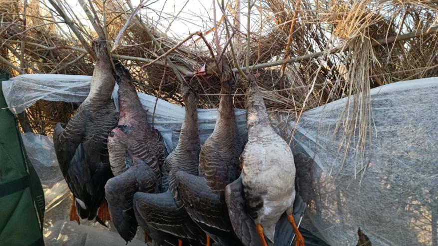 Закончилась недельная жизнь в полях саратовской области, северный район. Гуся искали долго накатав 600км в его поисках, но гуся нигде небыло. Решили вернуться на старое свое место и ждать там. Гусь появился в воскресенье в малом количестве. Сама охота была во вторник так как ветер немного поутих и температура была +4. Утрянка продлилась часа полтора и час на вечерку. Налетов было немного но приятными табунками которые издалека откликались на манки и охотно шли на нас и наши чучела. Утро среды было 3 налёта но стрельба подкачала. Всех кто нашёл и добыл своего гусика с Полем!!!!