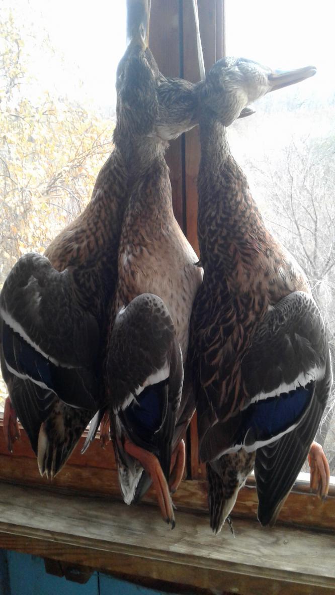 Какая прекрасная погода ! Сегодня изменил своим правилам и охотился с чучелами ( ну как чучела))- нашел на чердаке шесть облезлых , обосраных мышами, издалека похожих- когда то раскрашенных под крякву))) Так как все маленькие болотца замерзли, поехал в лес к Самарке, сразу смотрю стаи над моим заговоренным местом кружат, подъехал, закинул пластмассовых чудовищ и давай в манок( за 35 советских копеек) дудеть - налетают...стреляю и выбиваю селезня, он с высоты втыкается в лёд и как куст брюквы отсвечивает мне хвостиком, начало есть... В общем и целом я свою норму взял. Замерз и поехал в баню откуда вам и пишу)))- всем НПНП! |