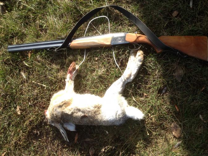 В субботу 28/10 выбрался на охоту. Один подъем косого, лежал в колке с плотной травой, встал в трех метрах, но из-за высокой травы и моего мастерства стрельбы (не привыкну к новому ружью), я по нему, благополучно смазал, но как оказалось ,все же немного зацепил. Пару часов и подранок был добран, благо собака помогла и наличие снега. Собака после долгого перерыва все еще толком не включиться в работу.
