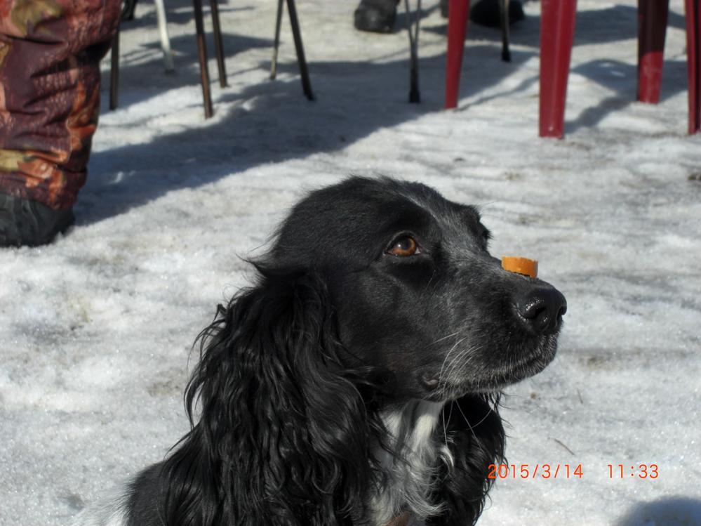у меня такая проблема появилась только с этой собакой. со щенячьего возраста посещали занятия по ОКД, ну кроме того времени, когда охота открыта. а каждая выставка-и все как в первый раз, глаза по пять рублей от большого количества собак и напрочь забывает про все "уроки". правда вчера к обеду грешным делом подумал, что все, "выдохся", притих. на сосиску стал реагировать. но не тут то было)) энергия не иссякла. только по приезду домой брякнулся спать. и проспал до вечера.