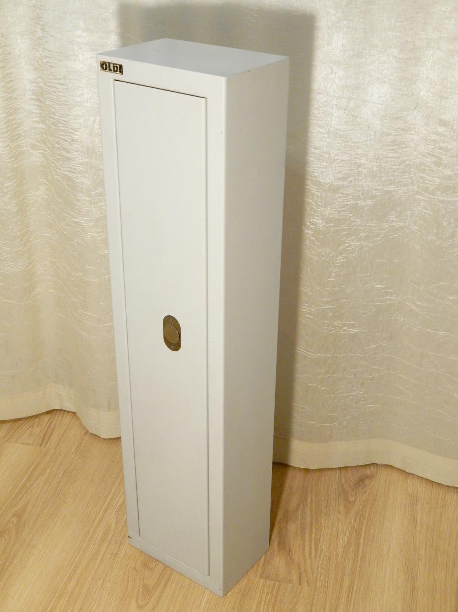 Сейф шкаф оружейный Oldi, для хранения огнестрельного оружия 1-2 ствола, в хорошем состоянии, без внутренней полки (удалена для увеличения внутренней высоты), внешние размеры 95см х 23,5см х 16см, толщина металла 1,5мм(+/-), вес ок 9кг, 3 ключа, на задней стенке отверстия от крепежа, цвет серый, надобности в нем более нет, самовывоз.