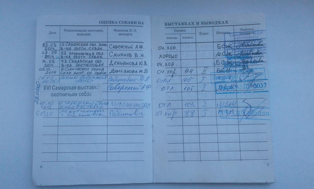 Порода: КУРЦХААР Дата рождения: 21 мая 2016 года В продаже: кобель - 4 (3 кофейных,1 в крапе); сука - 3(2 в крапе, 1 кофейная) Место нахождение щенка: г. Тольятти Вязка спланирована племенным сектором секции ЦКОС Волгоградского ОООиР Цена: 30.000 (разумный торг) комплект документов : РКФ,РОРС Владелец: Чепурных Павел тел. 8(917)1403025,8(927)8918376, 8-9879-619439 Татьяна. Мать: Еврона - 01.05.2013 г.р. ВПКОС 4261/14, РКФ 3825292; вл. Чепурных П.В Окрас: кофейный. Экстерьер: отлично. Племенной класс: первый. Полевые дипломы:1-ДIII,1-ДII-тетерев, 4-ДIII перепел,1-ДII,1ДIII утка1-,ДII куропатка. 3-место на Ежегодных состязаниях МОКО "Немецкий курцхаар" по перепелу 12-14 июня 2015. от: О. AMIGO Z CZARNEGO DWORU UKU 0014087 Гапон А.А М. Карма ВПКОС 3452/09 Вл.: Карпухин И.М 5-д III п/д,3-д IIу,1-III у,3-д III к/с,III-волок Отец: Сарбон 15.06.2010г.р. , ВПКОС 3998/13. РКФ 2743905 вл. Апраксин А.В. Кофейно пегий в крапе. Экстерьер: отлично. Племенной класс: Элита. Титулы: Серебренный призёр на Волгоградских состязаниях пополевой дичи 13-14 апреля 2013г Полевые дипломы: 1-II,5-дIII п/д , 1-II,1-II утка от: Отец- п.п.БЕРТ ВПКОС 3273/07 Владелец: Штепа Алексей Александрович мать-МЕРСЕДЕС ВПКОС 3451/09 Владелец: Кречин Андрей Васильевич Последний раз редактировалось mazdred; 22.05.2016 в 22:52. |