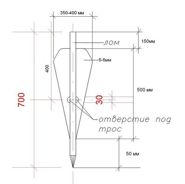 сейчас хочу попробовать "грузинский якорь", вот он в работе чертеж как я понял один из основных плюсов - возможность использования в одиночку |