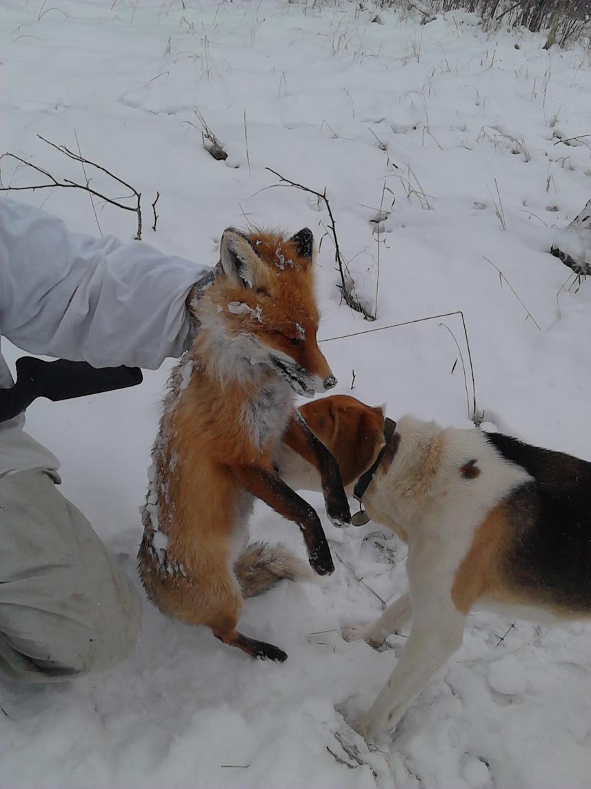 Отхожу метров 300 смотрю Графинус опять залетает в карту от туда 2 козы, никак не дают нам рыжих погонять())) вообщем тоже их теряет из за сильного ветра ну и слава богу, через полчаса решили пройтись вдоль посадки, в итоге подъем косого.но тут он оказался везучее+ сильный ветер сдул снег и много участков голой земли(((.Так прошла суббота. Сегодня беру пса и опять туды) с 9.00 до 15.00 3подъма лис и 1подъем козы, но никто не пострадал! Выхи прошли отлично!