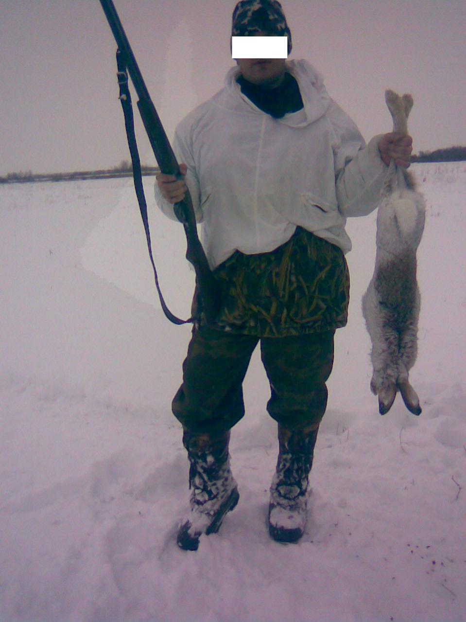 ...вот этого зайца , что на фото, взял на третьем круге. В качестве "гончей" выступал мой дядя)), непревзойденный следопыт, охотник с 50 летним стажем). Красивый получился выстрел, я стоял в заброшенном мелиоративном канале, увидел русака , метров за 500, приготовился к выстрелу, но заяц почему то отвернул, пришлось стрелять метров на 45...выстрел- подумал что промах, но пробежав 30 метров заяц свалился, забив задними лапами...
