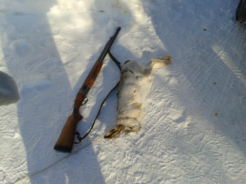 Утром мороз -30,но мы с товарищем не испугались и поехали.Славно погуляли,подышали,ну и зайку добыли!