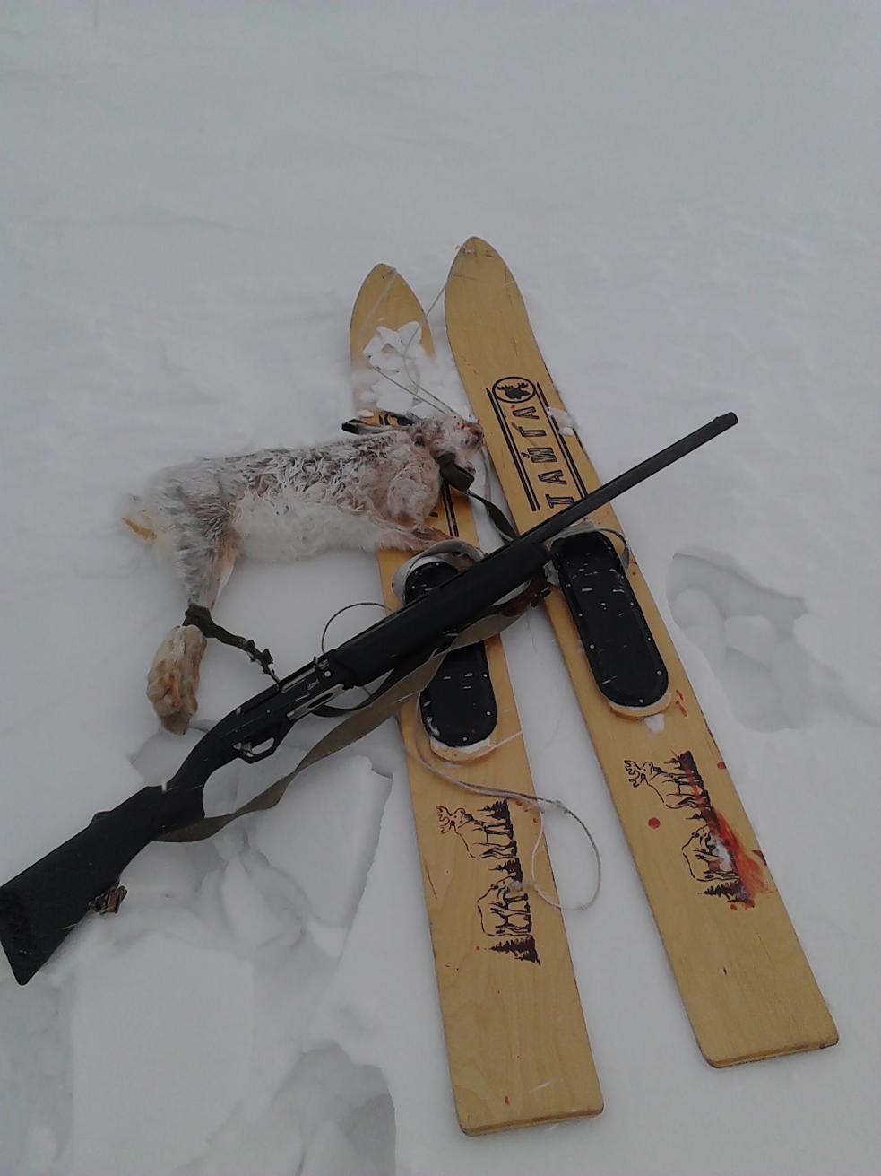 Вообщем вместо запланированного выезда из чапа в субботу, решил уехать в пятницу после работы...Батя встретил жаркой банькой с меня разумеется холодненькое пивко) Посидели поболтали время 1.00 решено в люлю..) Утром отец не пошел, остался с внуком) Приезжаю в сад. Прохожу км 3-4 ни души... снег начался(+ветер.. погода делает свое черное дело иногда. Решено было пройти ешё пару карт в сторону а\дороги... и вот он свежак... но уже немного запарашен. обрезаю карту выходов нет, ворачиваюсь на скидку, голову туда сюда.. смотрю косой в 200м чешит от нас. (я и песик) снега по самые коконы)) даже в лыжах см на 15-20 уходишь. Вообщем ставлю песика, через 150м теряет.. не понимаю.. иду, а там....ночные игры степашек... пока начинаю распутывать поднимаю ещё одного... но даже тот в сторону а\дороги.. на асфальт и как вчесал.. как Ф1...))) через пару км тоже был потерян( из за сильного ветра и снега) В расстроенных чувствах прохожу ещё км 3. Ни души, думаю вроде жена нормально провожала))) чего не прет то(( вообщем ещё за спиной пара километров.. Решено перекусить пес всегда рядом, даже очень.... постоянно на лыжах) сзади чешит. и мне мешает... снега по брюхо. Заворачиваю в сторону авто и про себя... а надо посмотреть того заю, который постоянно уходит через речку на прямую.... Перехожу речушку, и смотрю стаааарый чтаарый след.. но пробую, при натоптал море, путал где то тут.... одна вторая третья вскидка, сердце колотит, а чуйка)) говорит что где то тут... и не замечая подъема, нахожу только свежий гонный след (3ий за сегодня степашка) Графин сразу на след и попер заю... метрах в 300 смотрю зая вдоль газ трубы попер, бежит еле еле, местами просто ползет... я а дорогу, думаю пойдет где легче... а нет. Слышу в другую сторону гонит... из последних сил пробегаю ещё 350-400м... поднимаю голову и вижу косой летит на меня а я на него средь поляны))) вскидываю баах.. мажу поторопился, отпустил малясь выдохнул и..... Чуйка не подвела, сезон в родных местах закрыт итог сезона 3 степки и 2 рыжих!!! По дороге домой в Чапаевск, на обочине встречались куропатки, 4 табунка и это все на отрезке в 20-25 км... Табунки от 7 до 15 голов. |