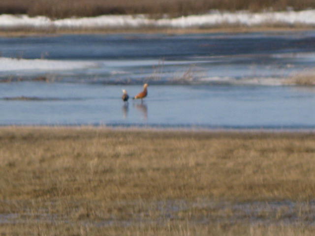 Только вернулся с разведки.Одно фото для затравочки.Снега почти нет,по обочинам уже озера.Но ночью был мороз и все во льду.Пока с утра было приморожено,доехали до кормовых полей.Все утоптано,угажено гусем,но гуся нет.В небе тоже сегодня тишина.Вывод простой,первая волна прошла.Утки много всякой.Лебеди.