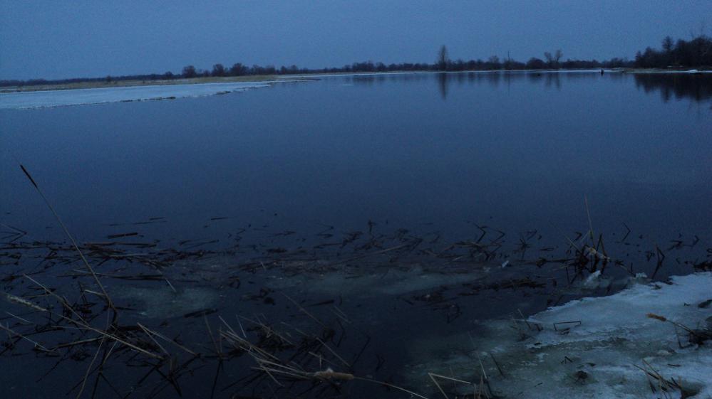 Ну и на последок сегодняшнего дня ,полный штиль , правда дальше по протоке ещё лёд стоит !