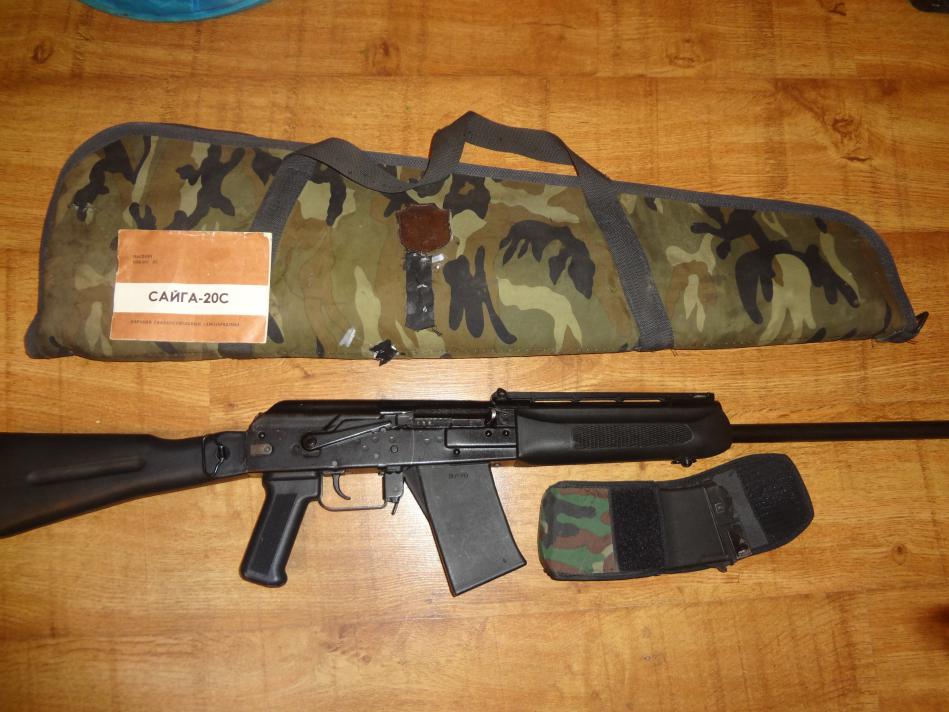 Сайга 20С 97г, малостреляное, пластик, складной приклад, 2 магазина, чехол