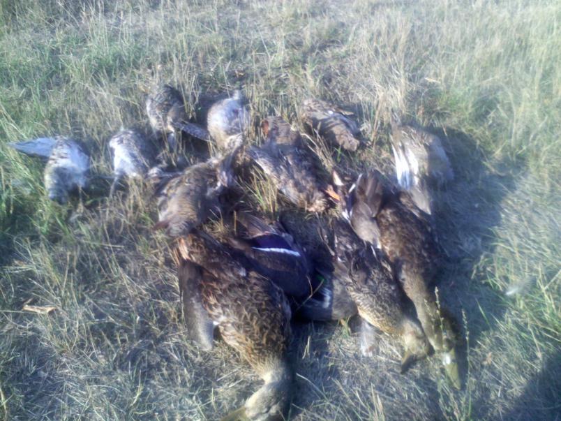 Утром в субботу с подхода крякаша промазал... Бывает... Потом шарахались по озерам... Вылетела стайка... Две больше не летали: