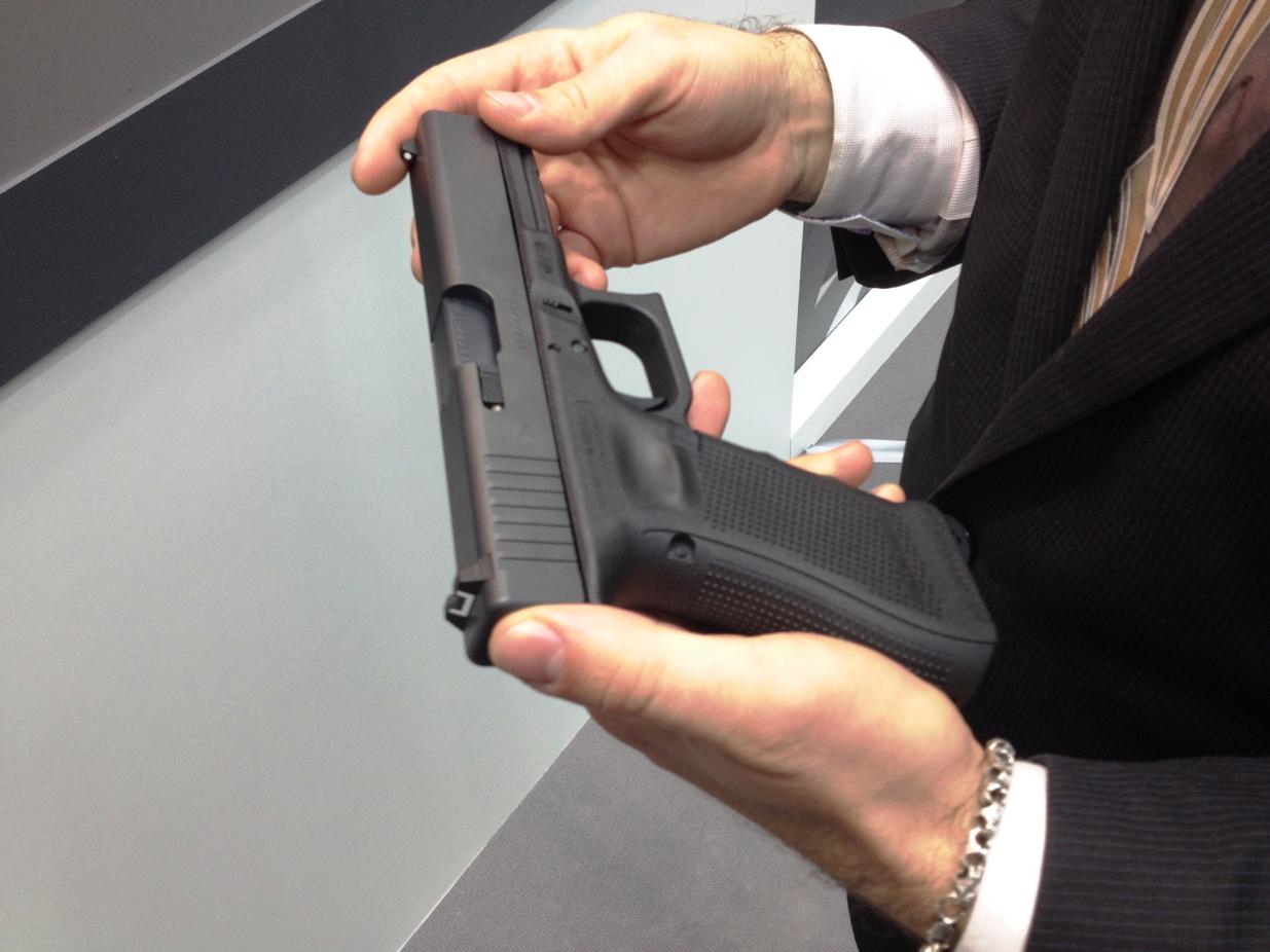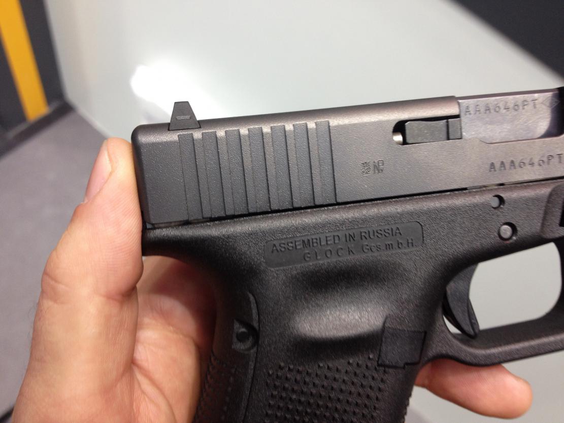 Ну пистолеты GLOCK представлять не кому не надо ,представленные экспонаты являются нарезным коротко ствольным оружием !Кстати на выставке произошел один неприятный инцидент,как рас связанный с этими пистолетами .Когда я подошёл к их стенду и попросил подержать GLOCK,меня сразу спросили ,а вам зачем ,честно я вопроса не понял ,и вот рассказ консультанта ,один молодой человек с явно выраженным лицом не славянской внешности,взяв с ветрены GLOCK ,и оттянув затворную раму попытался засунуть в патронник патрон от травматического пистолета ,и после этого инцидента было решено поставить экспонаты под стекло ,от греха подальше и от дураков тоже!