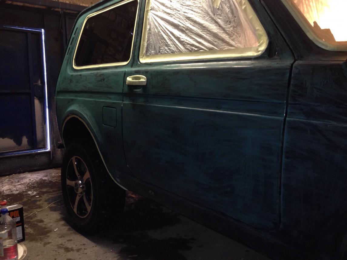 Нива-коротыш одного из форумчан, цвет "несси" в работе, фото по окончании.