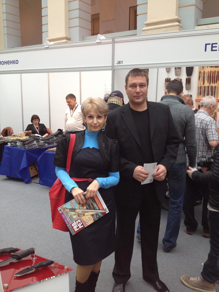 На выставке встретил свою хорошую старую знакомую ,красавица спортсменка и просто умница из Киева ,Наталия Гребенщиковуа ,для жителей ганзы представлять этого человека не надо ,в Украине она представляет продукцию Кизляра, в России некоторых серьёзных производителей клинкового оружия . Так вот получил от неё официальное приглашение на участие в её детище ,фестиваль который проходит в Киеве, Стальная грань!Но жена кричит нехрин делать