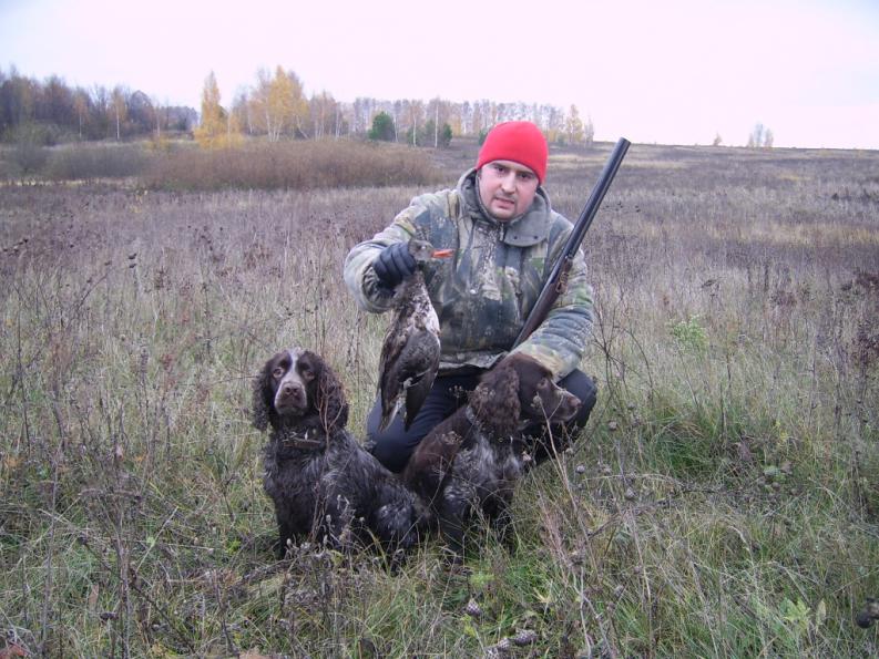 Была спаниелька,искала молча потом когда поднимала шла с голосом.Заяц из под неё шёл не спеша.Поэтому брали практически всегда.Гонять начала не было ещё и года и так втянулась,что потом на утку два года совсем не обращала внимания.Потом пошла.Слух о ней у нас был большой и как результат украли.Брал месячным кутёнком в Чубовке.