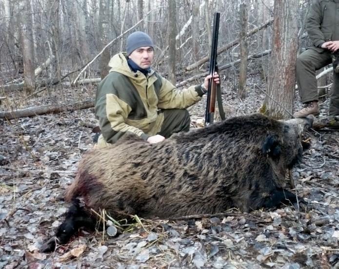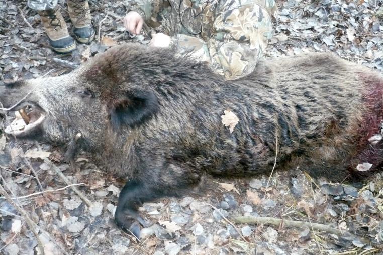 Славно поохотились на коллективной охоте в субботу! Добыт трофейный секач!