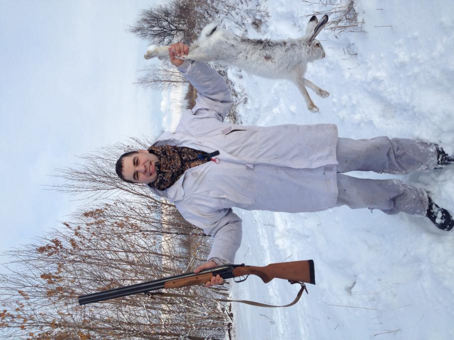 насчет русака не знаю, но беляк бегал. около восьми подняли и сразу увел собаку со слуха. пока поднялись на гору, пока до дороги дошел, минут 20 прошло. следом напарник пришел. стоим-тишина, ни лая, ни ветра. и тут у друга загудел телефон. ни позже, ни раньше! надо ж было именно в этот момент! не ответить не мог-на работе труба какая то лопнула, стоит ЦУ раздает. а гона так и нет. и блин, смотрю заяц от нас уже в сторону не спеша так прыгает. другу-молчи. а далековато уже. ружье вскидываю, стреляю. раз, да второй. и тут зай разворачивает и еще раз мимо нас, только в другую сторону. друг дуплетит, а зай дальше уходит. бежим туда. ага! кровит. метров 200 пробежали, он как шел на махах, так и идет. только капельки крови такие приличные на снегу. кобель с голосом догнал, нас обошел и молча дальше по следу ушел. через какое то время заголосил и опять через овраг ушел. мы по следу двинулись. кровит. ну, думаю дойдем все таки. до трех часов так думал, что вот, вот. вот сейчас. местами вместо капель катышки шерсти с кровью. в итоге кобель отступился первый. а мы так и не распутали последнюю скидку, точнее мы ее не нашли. зай вышел на тропу раз наверно в десятый. и куда скинулся просмотрели. вокруг уже столько раз все прошли. и собака, и мы, и заяц. когда назад выбирались, кобель еще одного поднял. но нормального гона не получилось. лапы в кровь все разбил.