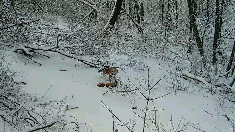 насчет русака не знаю, но беляк бегал. около восьми подняли и сразу увел собаку со слуха. пока поднялись на гору, пока до дороги дошел, минут 20 прошло. следом напарник пришел. стоим-тишина, ни лая, ни ветра. и тут у друга загудел телефон. ни позже, ни раньше! надо ж было именно в этот момент! не ответить не мог-на работе труба какая то лопнула, стоит ЦУ раздает. а гона так и нет. и блин, смотрю заяц от нас уже в сторону не спеша так прыгает. другу-молчи. а далековато уже. ружье вскидываю, стреляю. раз, да второй. и тут зай разворачивает и еще раз мимо нас, только в другую сторону. друг дуплетит, а зай дальше уходит. бежим туда. ага! кровит. метров 200 пробежали, он как шел на махах, так и идет. только капельки крови такие приличные на снегу. кобель с голосом догнал, нас обошел и молча дальше по следу ушел. через какое то время заголосил и опять через овраг ушел. мы по следу двинулись. кровит. ну, думаю дойдем все таки. до трех часов так думал, что вот, вот. вот сейчас. местами вместо капель катышки шерсти с кровью. в итоге кобель отступился первый. а мы так и не распутали последнюю скидку, точнее мы ее не нашли. зай вышел на тропу раз наверно в десятый. и куда скинулся просмотрели. вокруг уже столько раз все прошли. и собака, и мы, и заяц. когда назад выбирались, кобель еще одного поднял. но нормального гона не получилось. лапы в кровь все разбил.