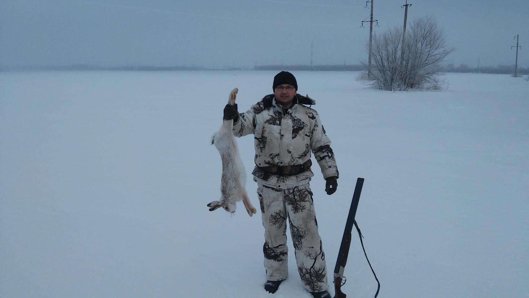 Думали вернемся пустыми. А очень хотелось посмотреть на ушастого. На обратном пути (метров за 300 до края села) косой попал под перекрестный огонь.