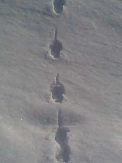 Сегодня гулял, увидел много следов, между отпечатками примерно 7 см. Не смог по интернету найти похожих. Следы ровной строчкой, зверек похоже не большой, на белку, мышку, бурундука не похожий. В раздумьях кто бы мог быть... А может мышь прыгала