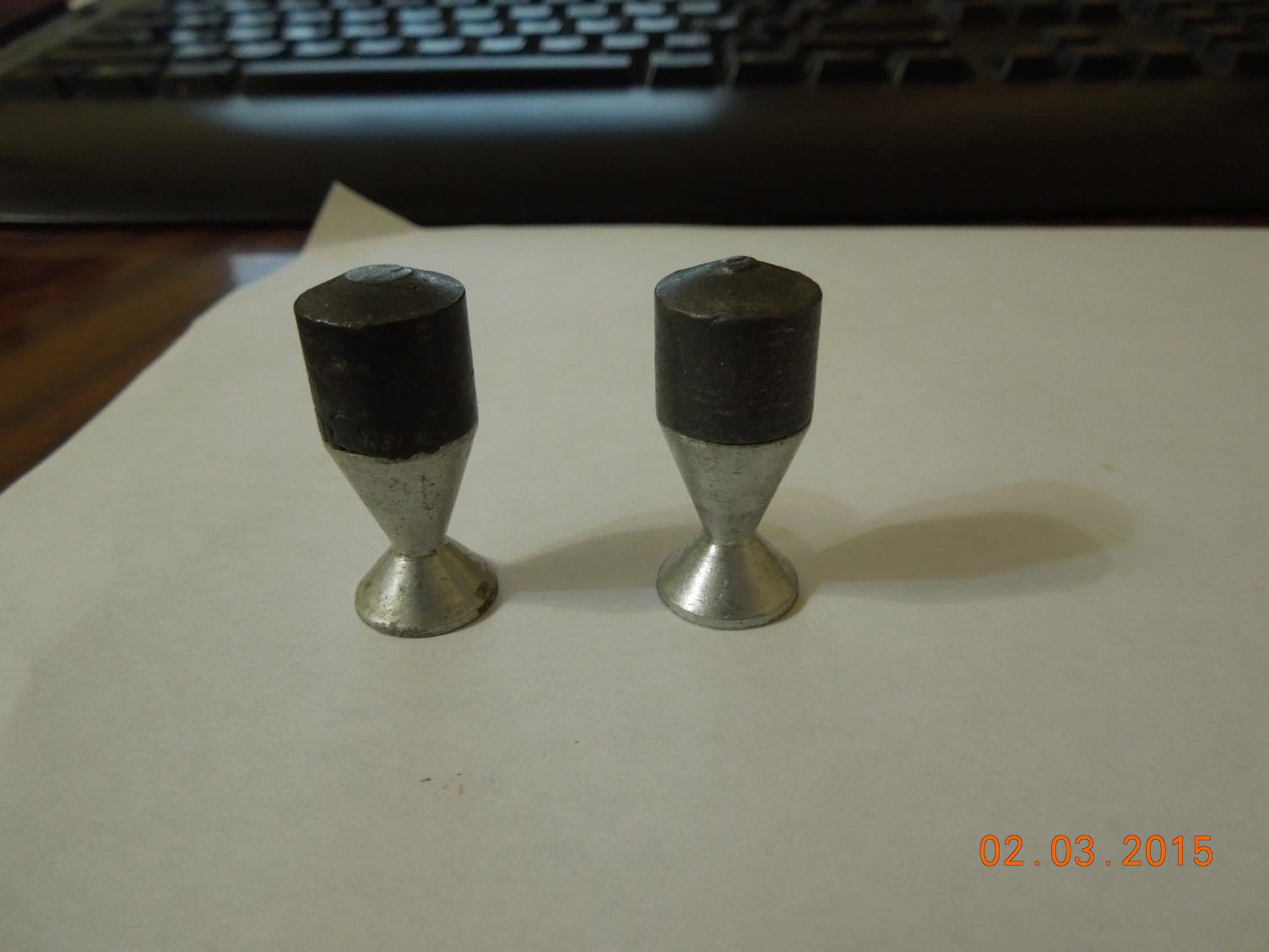 вот, нашел. фаска минимальная, острую кромку притупили примерно 0,3х45. а вторая пара-дюраль со свинцовой башкой, эти меньше понравились, но зато за ствол не так страшно.