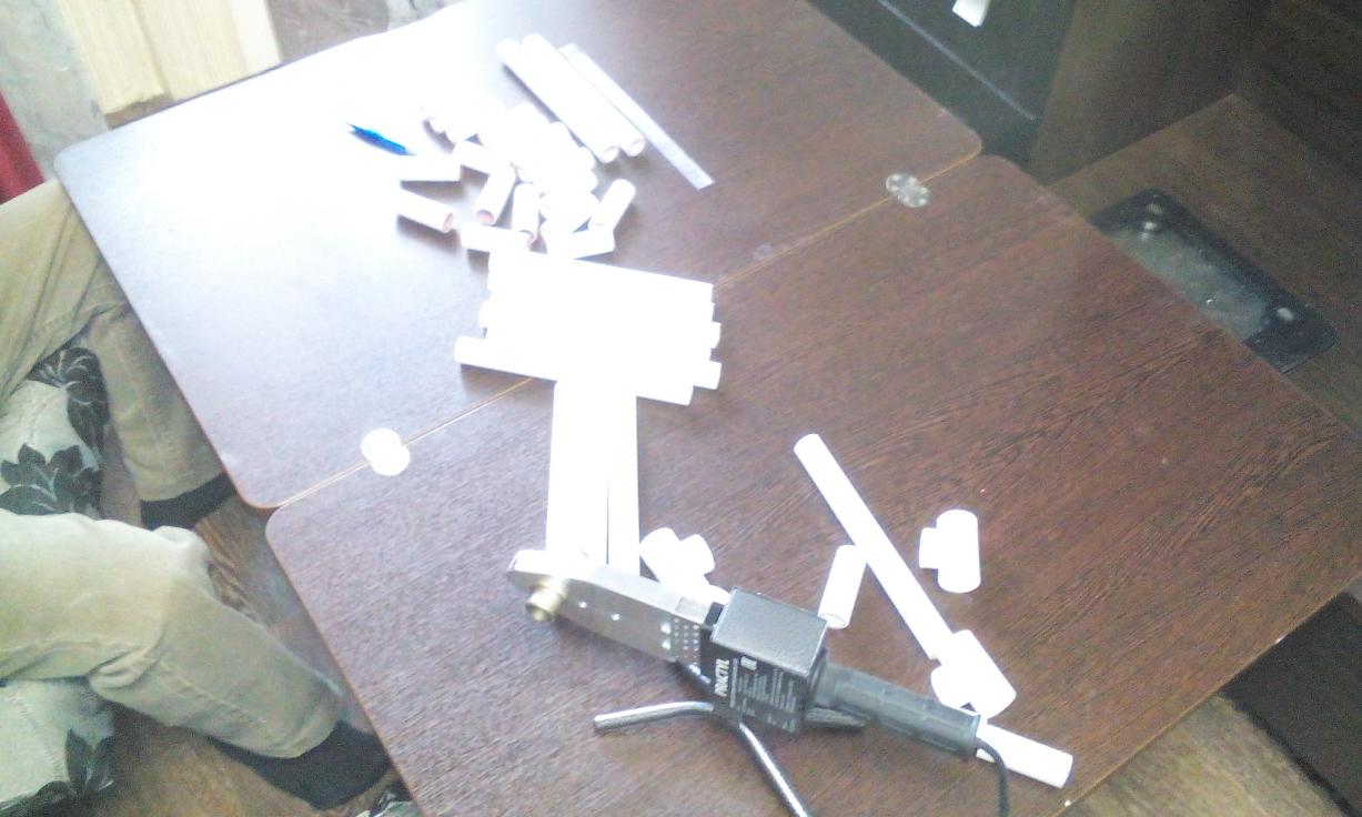 Заехал сегодня в Леруа Мерлен, затарился утюгом, специальными ножницами, армированной ПВХ трубой и фитингами. Вот что получилось.