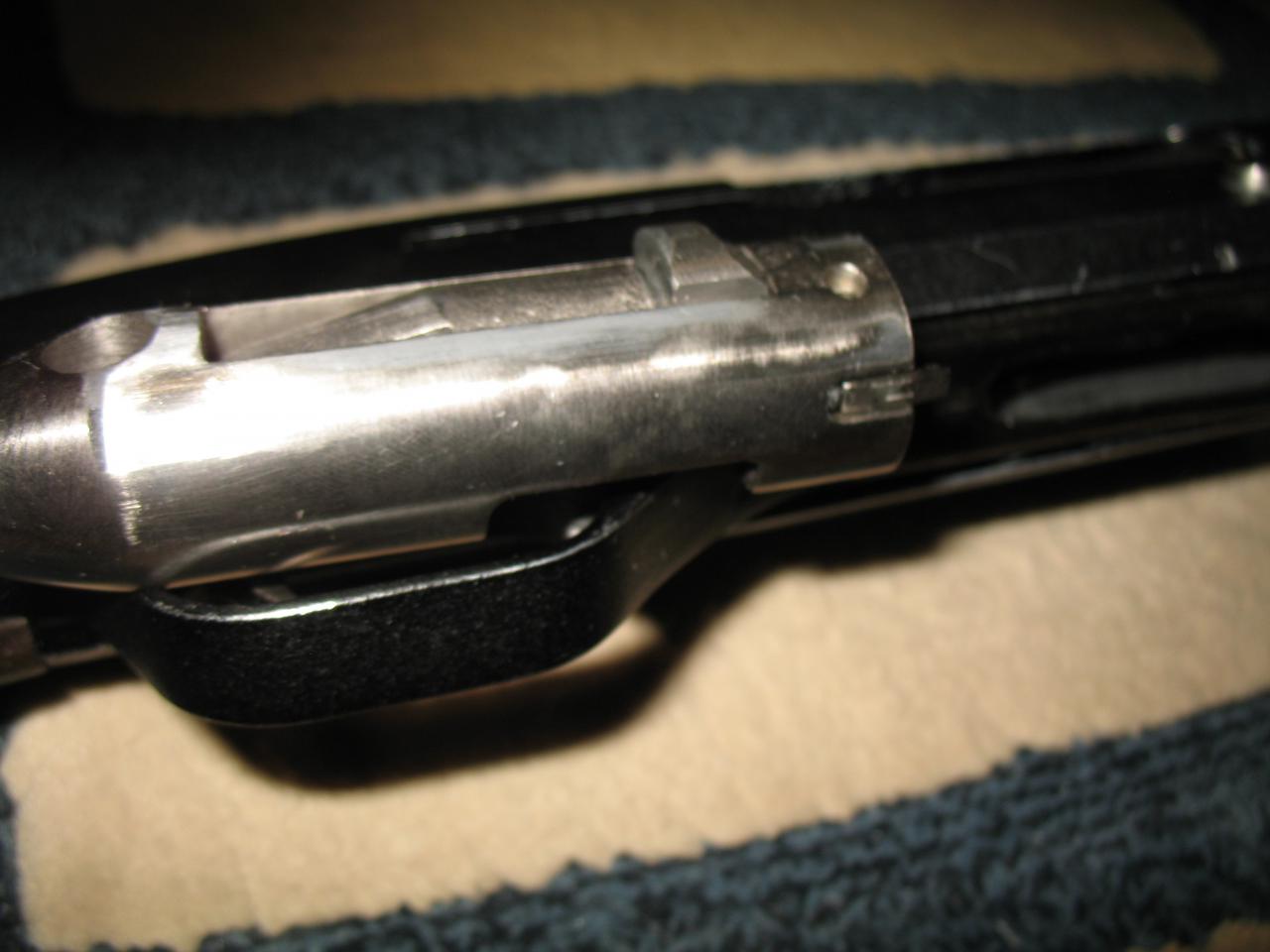я так думаю заусенец появился из-за неправильного скольжения затвора, т.к. затвор из более твердой стали чем ствольная каробка, т.е. заусенец появился от притирки затвора об неё?!