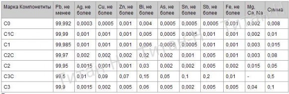 точный состав свинца не знаю, скорее всего чистый (СЗС).