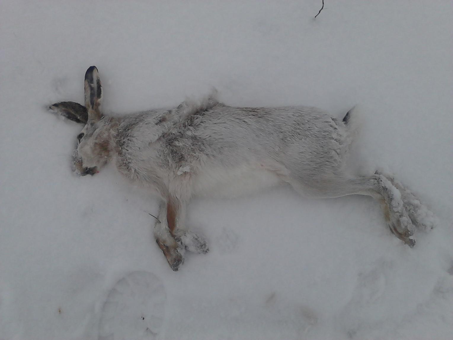 Заяц лежал на пашне и не в какую не хотел подниматься с лежки,пришлось снежком его от туда выбивать,отпустить на 30-40 метров и бить его.Был еще хороший след,но у меня не было времени,надо по делам.