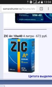 ZIC A+ 10w-40 полусинтетика 4литра - 880 руб.