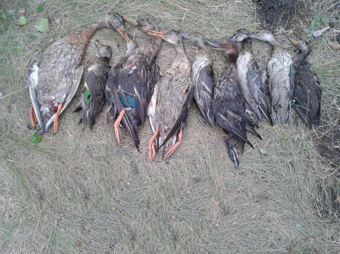 Всё бы ничего, но и не без ложки дёгтя. Чуть не вступили в перестрелку с умниками, которые проходя на моторе вдоль камыша, в упор, десятками уничтожали "хлопунцов" (чёт в этом году на крыло поздно встают)...