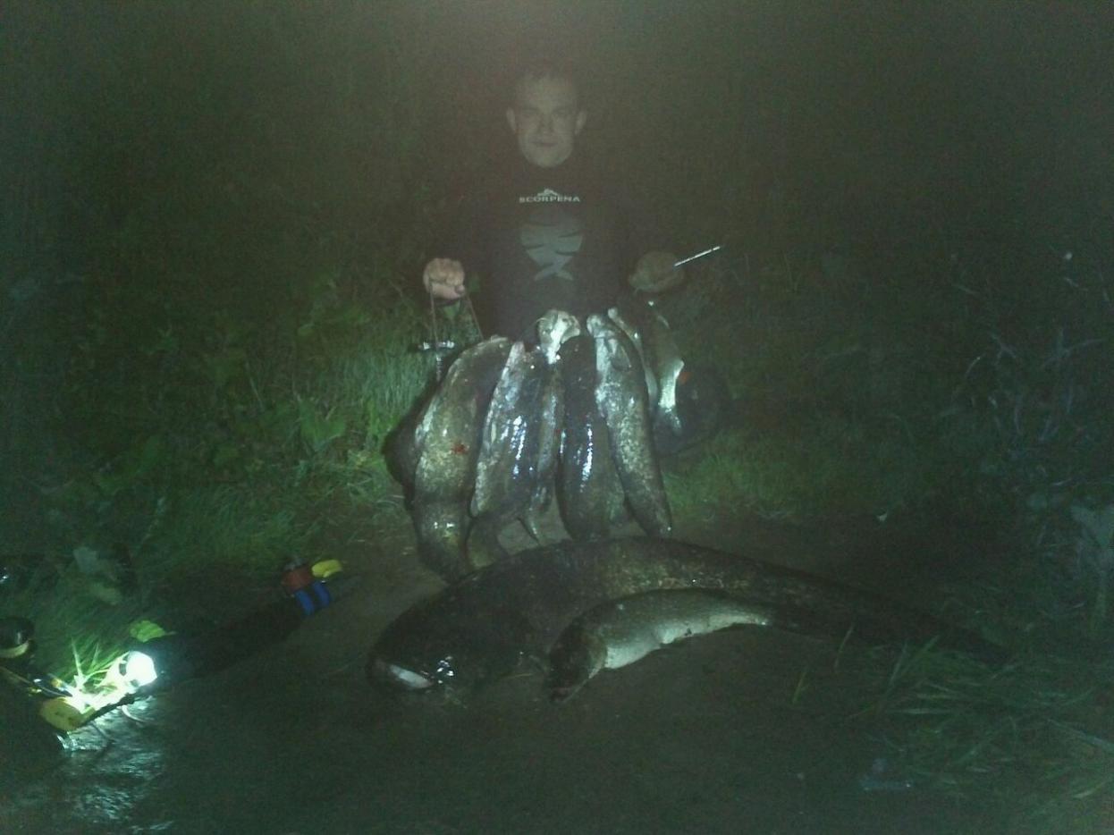 Женек, хорош мелочь по Волге шугать, приезжай к нам! Только что с "ныра", сомиков настреляли маненько, общий вес 40 кг, Петруха второй десяток разменял в этом сезоне, я пока что беру качеством, а не количеством, мой вытянул на 17.100.