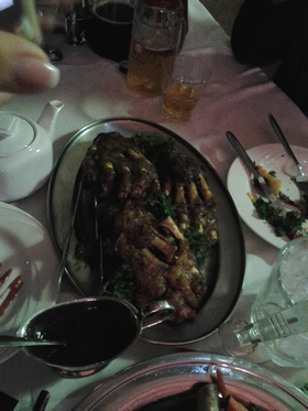Лапы медведя нам специально принесли в закрытом виде, чтобы не пугать посетителе ресторана, уж очень похожи на человеческие руки.