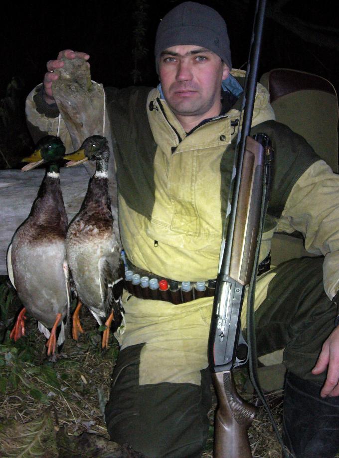 Сегодня видимо не мой день ))- приехал на охоту, а все обмелевшие озера под сантиметровым льдом- заряжаю 7 , решил бекасов проверить, подхожу к баклуше, бекасов нет...но с другого берега куропатки поднялись...как промазал сам не понял. Злюсь, поехал на вечерку, встал снова на перелете, играю манком, крякаши мечутся, на зов летят 9 штук, переговариваюсь с ними, казалось счастье было так близко )))))- но фиг...сбиваю только одного, он падает на отлет, к стене камыша, метров за 150, бегу , Усейн Болт закурил бы если б увидел как мы бегаем по полной боевой)))- утка не может пробиться в камыш ...метров 15 остается. .. налетает селезень ....бью...полетел дальше...опускаю глаза - утки нет, перерыл все... возвращаюсь на луг...уток полно...но все не на меня. Пока ехал домой думал о пользе собаки на охоте и чучел....всем ни пуха ни пера.