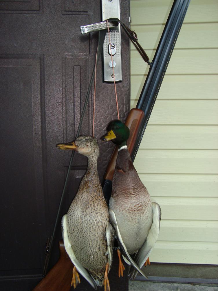 Ржу не могу. Селезню две дробины в голову попали а в утку четыре дробины промеж лопаток.