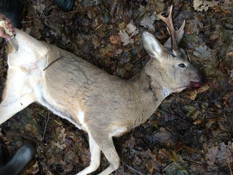 Выезд в выходные. Загонная охота! Два загона, при первом взят козел, при втором - три сеголетка, вышли на один номер! Стреляли с Тигра 7,62 х 54.