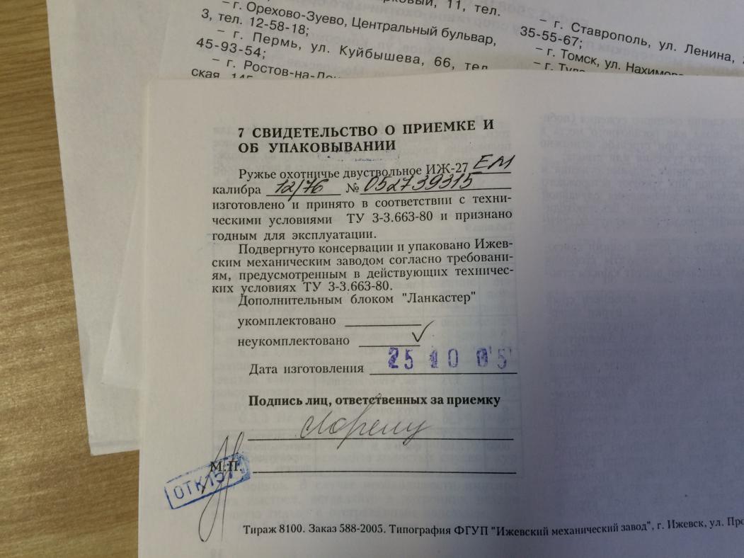 Продается в Тольятти ружье ИЖ 27 ЕМ,год выпуска 2005, куплено в феврале 2006г. новым в магазине ЗАО "Тульское оружие".
